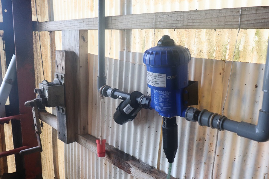 液肥混入器「ドサトロン」をすべての豚舎に完備しております。飲料水を浄化するために必要な薬を混入させる機械で、水量に応じて必要な分だけ薬を注入してくれます。水量が変化しても希釈率は一定に保たれるため、過剰に薬が混入してしまうことはありません。